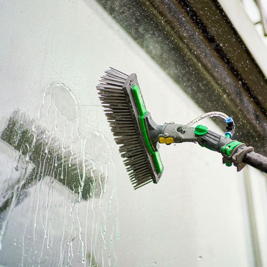El sistema de limpieza con agua pura UNGER permite a los profesionales de la limpieza de cristales y edificios entrar en el mundo de la limpieza de cristales moderna. Con las varillas nLite con soporte de agua y el sistema de limpieza de agua pura HydroPower®, la limpieza de cristales hasta una altura de 20 m se puede realizar sin necesidad de utilizar productos químicos. Sin tirar y sin pulir, y esto de forma segura desde el suelo. Un sofisticado concepto de manejo facilita el trabajo diario. Modular y telescópica, hay una solución para cada tipo de edificio. Para la producción de agua pura, UNGER ofrece filtros de agua con desionización u ósmosis inversa.